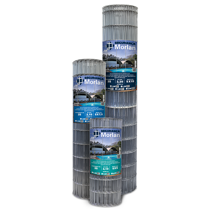 Comercializadas em rolos com 25 metros de comprimento, a tela soldada Segurança Morlan ZN3® é fabricada em várias opções de malha, fios e alturas, para que o consumidor possa escolher a opção mais adequada ao seu projeto. Fabricada conforme norma ABNT NBR 16715.